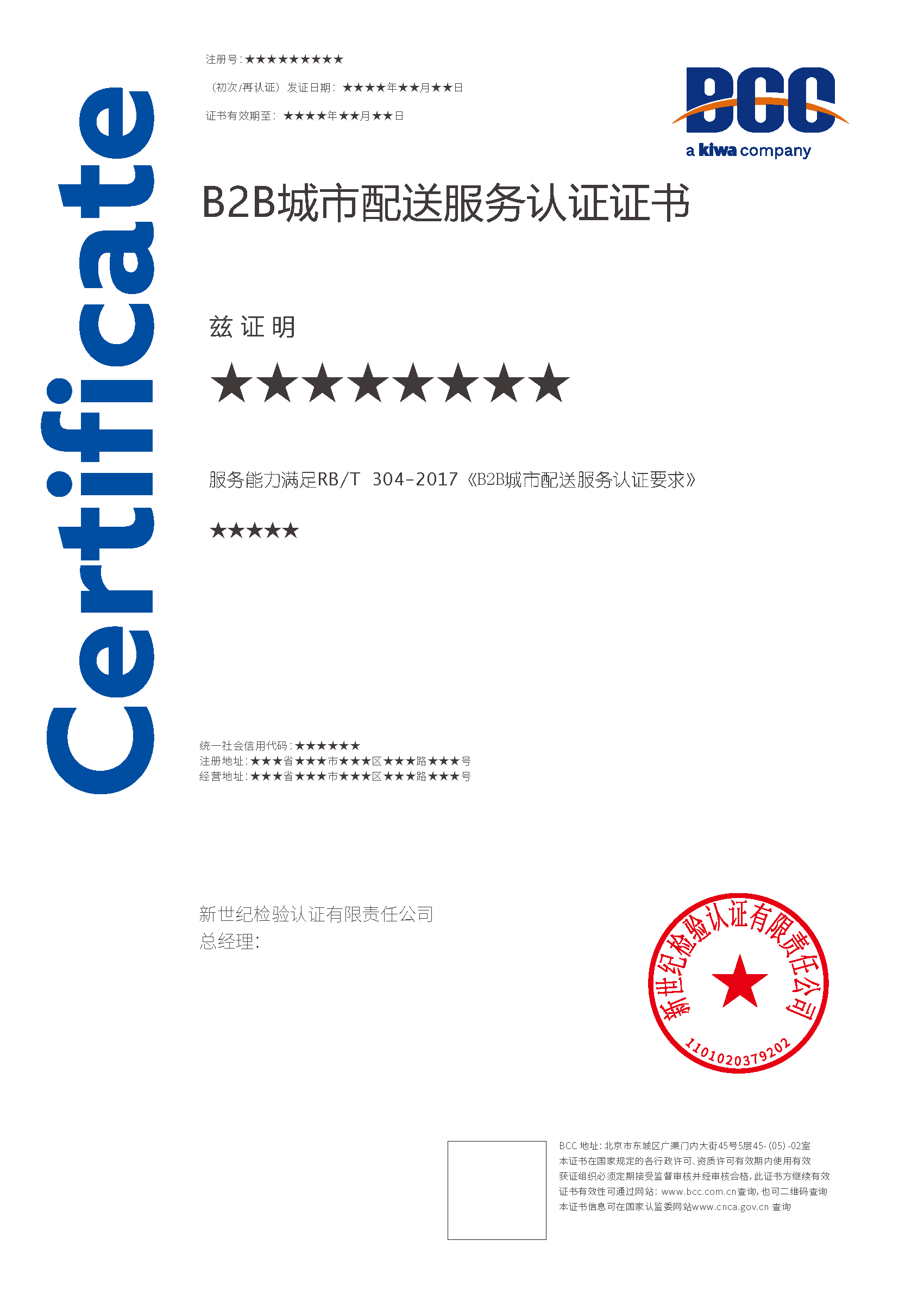 申請B2B城市配送服務認證的組織應當向BCC提交書面申請書并提供所需資料: