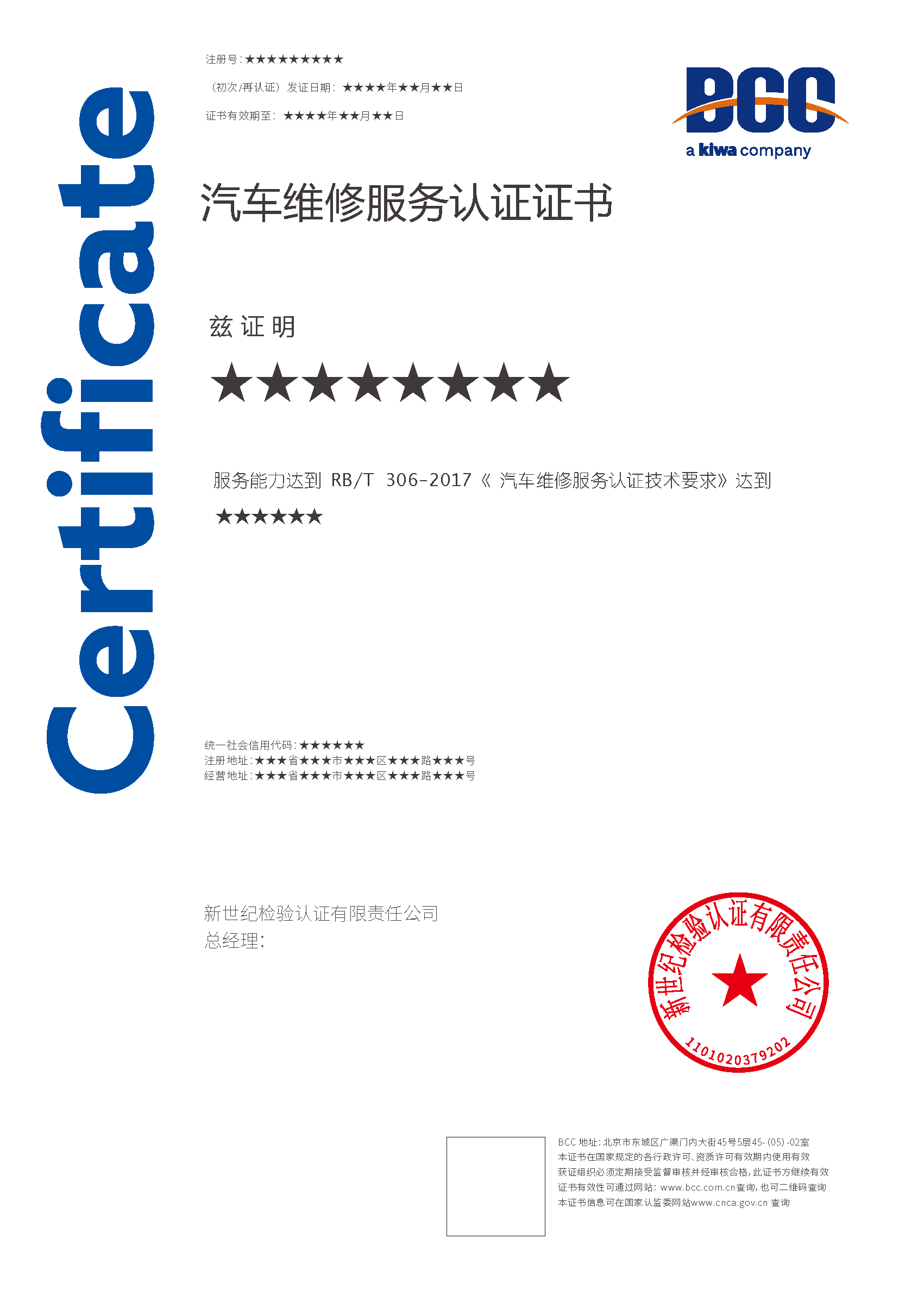 申請汽車維修服務(wù)服務(wù)認(rèn)證的組織應(yīng)當(dāng)向BCC提交書面申請書并提供所需資料: