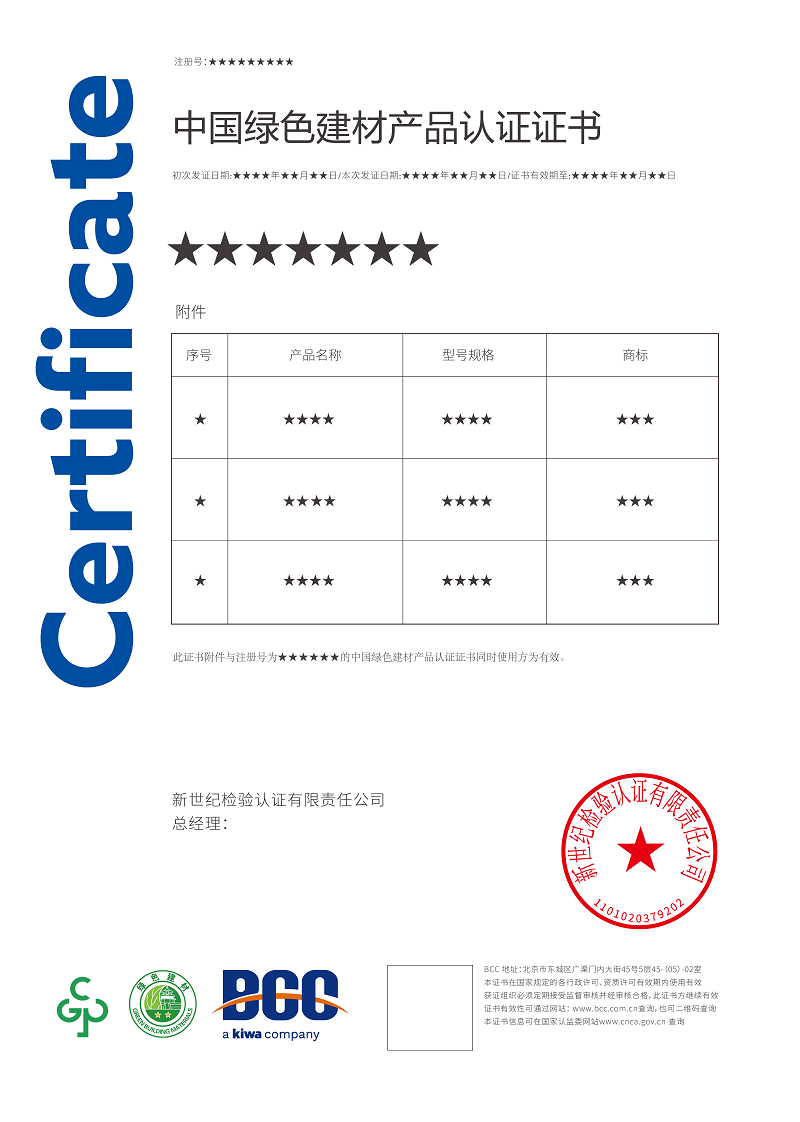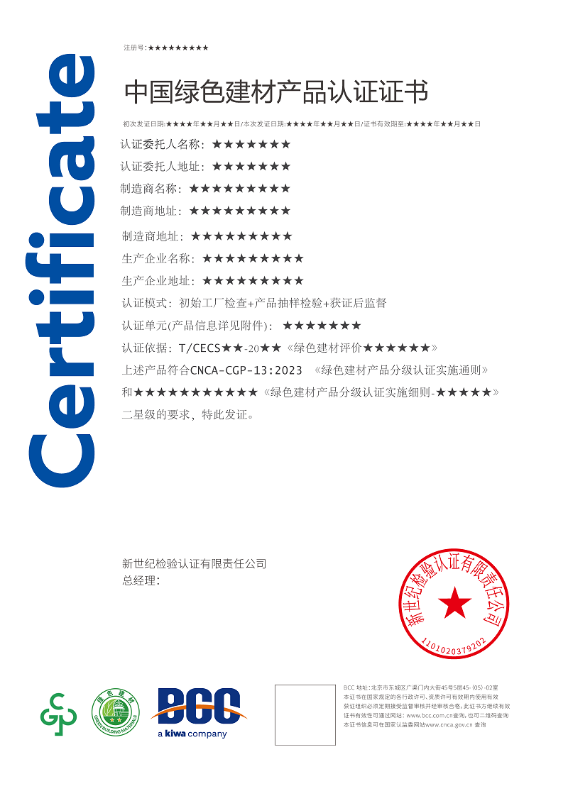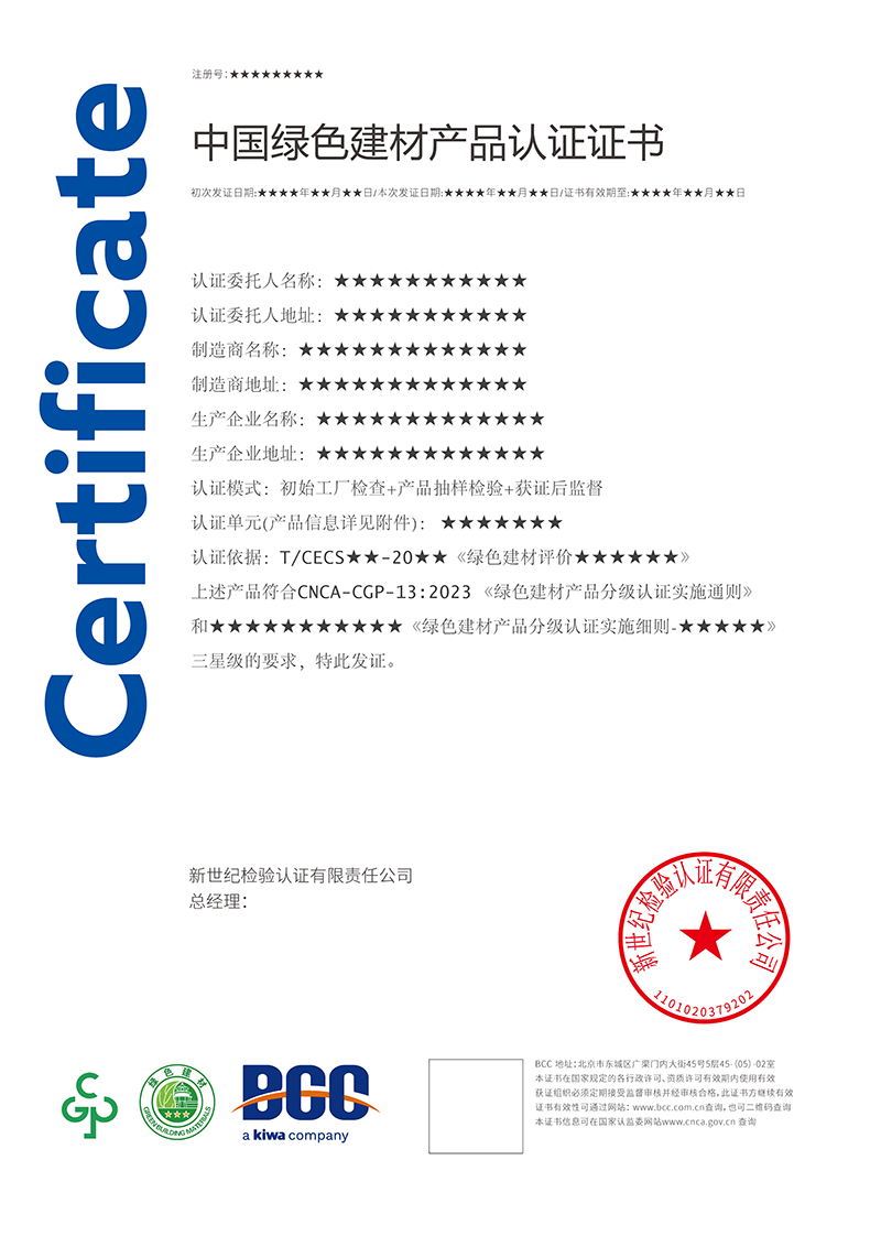 綠色建材產(chǎn)品分級(jí)認(rèn)證按照中國工程建設(shè)標(biāo)準(zhǔn)化協(xié)會(huì)發(fā)布的《綠色建材評(píng)價(jià)標(biāo)準(zhǔn)的要求》,將認(rèn)證結(jié)果由低至高分為一星級(jí)、二星級(jí)和三星級(jí)。