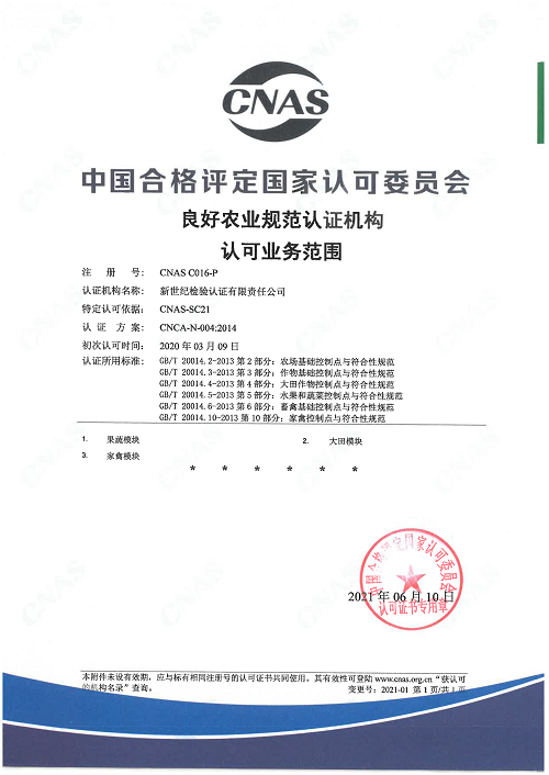 良好農(nóng)業(yè)規(guī)范認(rèn)可證書 |
