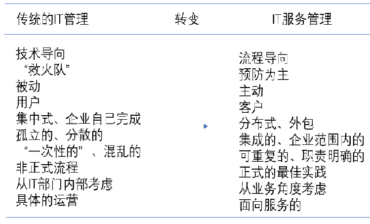 根本出發(fā)點(diǎn)在于通過 IT 服務(wù)有力的支持企業(yè)的發(fā)展以及業(yè)務(wù)部門業(yè)務(wù)的開展,促進(jìn)企業(yè)競(jìng)爭(zhēng)力的有效提升。在 IT 管理當(dāng)中,IT 服務(wù)管理屬于不可或缺的構(gòu)成部分。但是IT 服務(wù)管理有別于傳統(tǒng)的 IT 管理,其存在的意義在于將基于服務(wù)之上的 IT 管理提供給購買 IT 服務(wù)的企業(yè)或內(nèi)部部門。