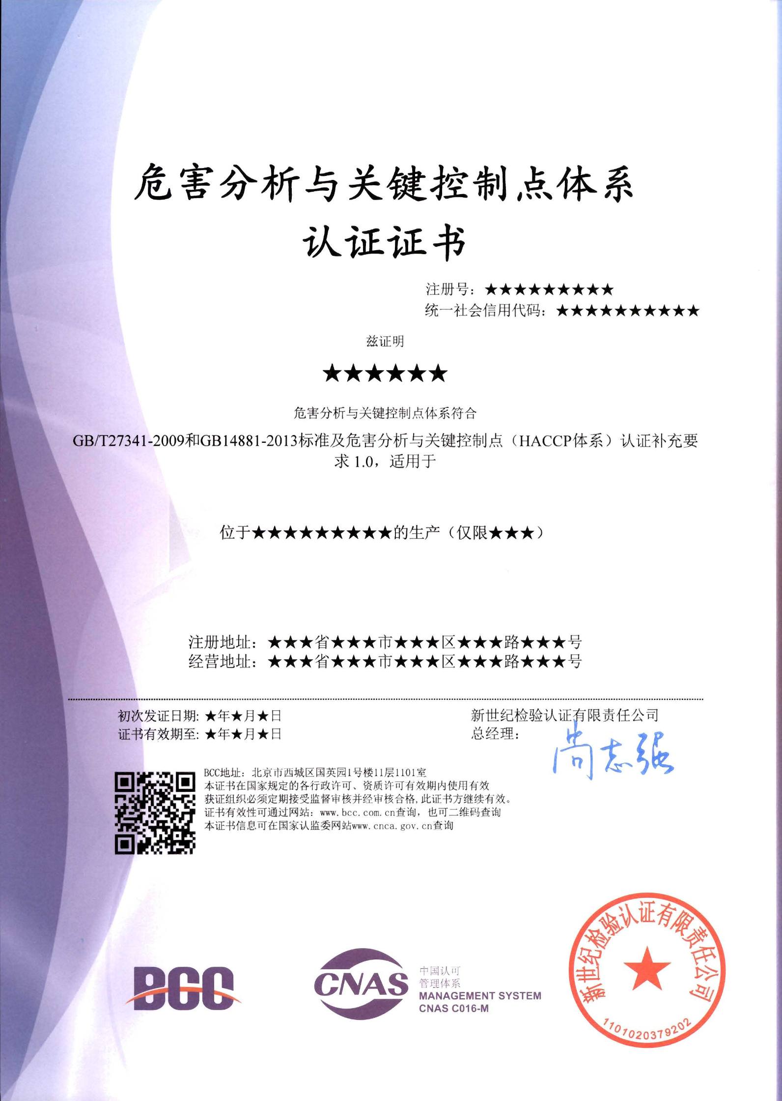 廣州專業(yè)haccp認(rèn)證證書(shū)